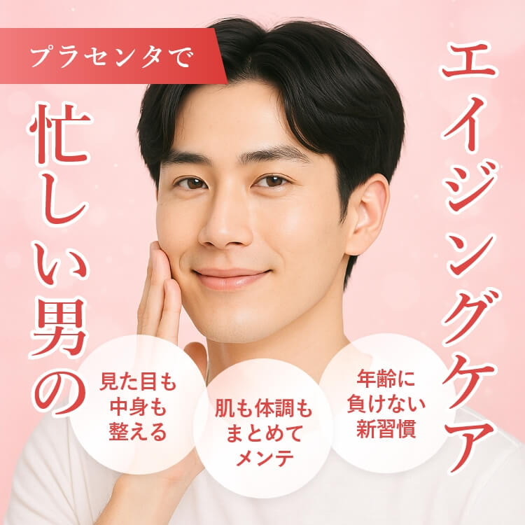 プラセンタ(胎盤エキス)は、美容の分野だけでなく健康維持や日常のコンディションサポートにも活用される成分です。外回りや長時間デスクワークでの乾燥・くすみ対策、年齢による肌や体調の変化へのケア、飲酒やストレスによる疲労感の軽減サポートなど、男性ならではの生活習慣にもフィット。