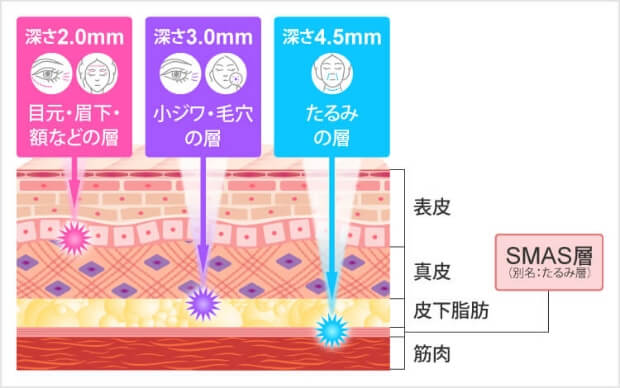 - 超音波エネルギーを使ってしわ、たるみの改善を目指す施術です。